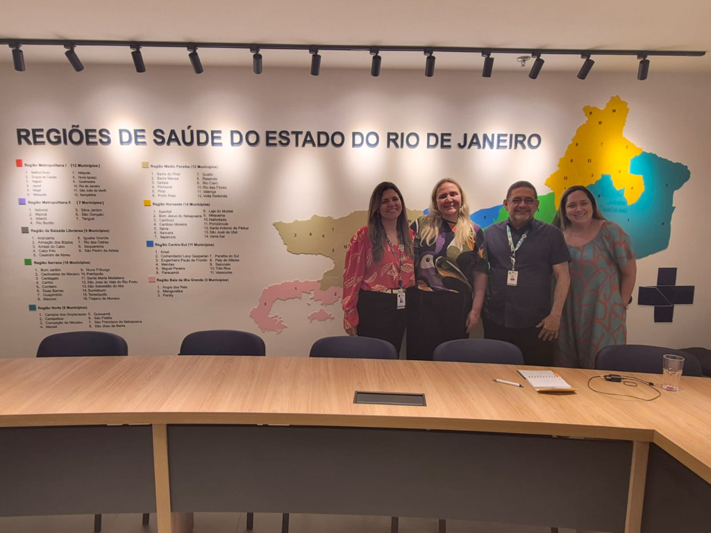 Participaram da visita Cícero Goes, secretário-executivo da CIT; Caroline Rocha, assessora técnica do DGIP/MS; e Patrícia Sant’Anna, da SEINP/RJ, que foram recebidos pela secretária-executiva do Cosems-RJ, Marcela Caldas.